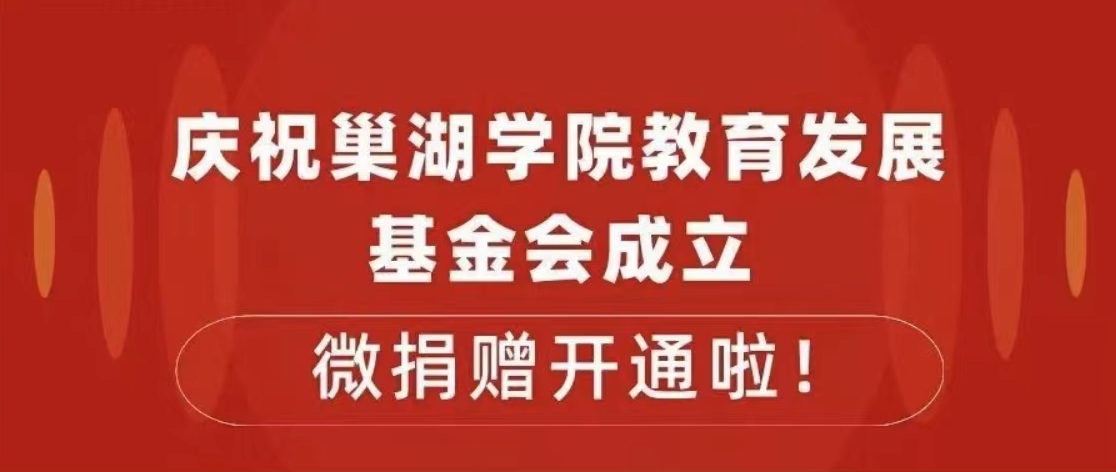 • 慶祝巢湖學(xué)院教育發(fā)展基金會(huì)成立,微捐贈(zèng)開通啦!